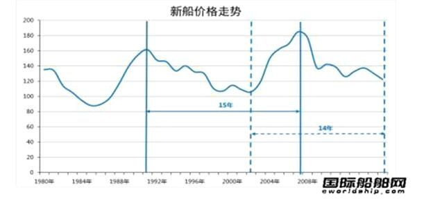 他評論稱,根據(jù)過去36年的船舶價格指數(shù)趨勢,經(jīng)過大約15年的一個周期會出現(xiàn)一個急劇增長,這一增長通常持續(xù)5至6年;因此,投資造船和航運業(yè)務需要在5年內(nèi)實現(xiàn)利潤,并在接下來的20年內(nèi)等待機遇。