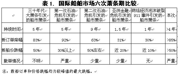 任何人均無(wú)法準(zhǔn)確無(wú)誤地預(yù)測(cè)本次船市蕭條期的長(zhǎng)短。目前,由于還存在太多的不確定性因素,使得我們無(wú)法確定本次后危機(jī)時(shí)期的經(jīng)濟(jì)走向。我們認(rèn)為,船市蕭條的終結(jié)有賴(lài)于前幾年船市高度興旺過(guò)程中積聚成的兩大泡沫【一是6.4億載重噸船舶手持訂單(2008年9月歷史最高位),二是2億載重噸造船產(chǎn)能】的擠出;世界經(jīng)濟(jì)及早復(fù)蘇并不一定能有效縮短航運(yùn)蕭條期,加速拆解老舊船舶和大量撤銷(xiāo)造船訂單才能使航運(yùn)市場(chǎng)提前復(fù)蘇;而造船市場(chǎng)供求關(guān)系的改善不僅要靠新船訂單量明顯增加,更有賴(lài)于全球過(guò)剩造船能力的處置。但是,大量拆解船舶對(duì)船東并不輕松,而造船訂單被大量撤銷(xiāo)和大幅度處置過(guò)剩造船能力對(duì)船廠(chǎng)造成的極大困難也是不言而喻的。至于本次船市蕭條持續(xù)時(shí)間,我們認(rèn)為船市蕭條期起碼要比世界經(jīng)濟(jì)金融危機(jī)長(zhǎng),即使世界經(jīng)濟(jì)出現(xiàn)復(fù)蘇,傳導(dǎo)至船舶市場(chǎng)還需要一段時(shí)間,最樂(lè)觀(guān)估計(jì)本次船舶市場(chǎng)蕭條期持續(xù)時(shí)間至少在7-8年,如果世界經(jīng)濟(jì)不能持續(xù)有效復(fù)蘇,世界造船市場(chǎng)蕭條持續(xù)時(shí)間將更長(zhǎng)。
